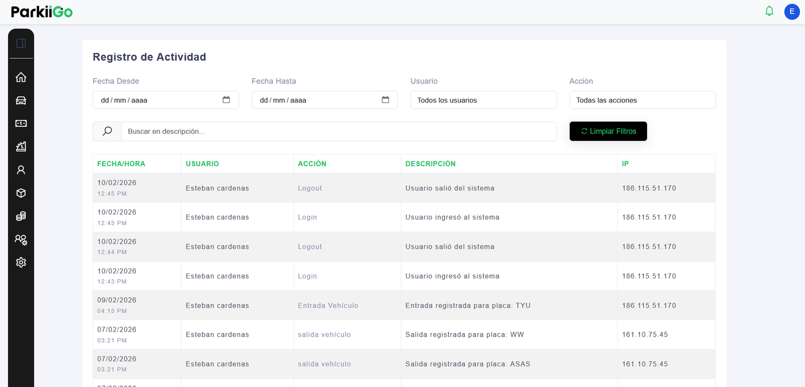 El orden es la base de la rentabilidad, y esta semana te damos las herramientas para lograrlo. – GESTIÓN INTELIGENTE DE ESPACIOS: Implementamos el inventario de cupos por piso y tipo de vehículo. Mira en tiempo real cuántos espacios tienes para motos, carros, bicicletas, etc. – CONTROL DE CARTERA: Estrenamos